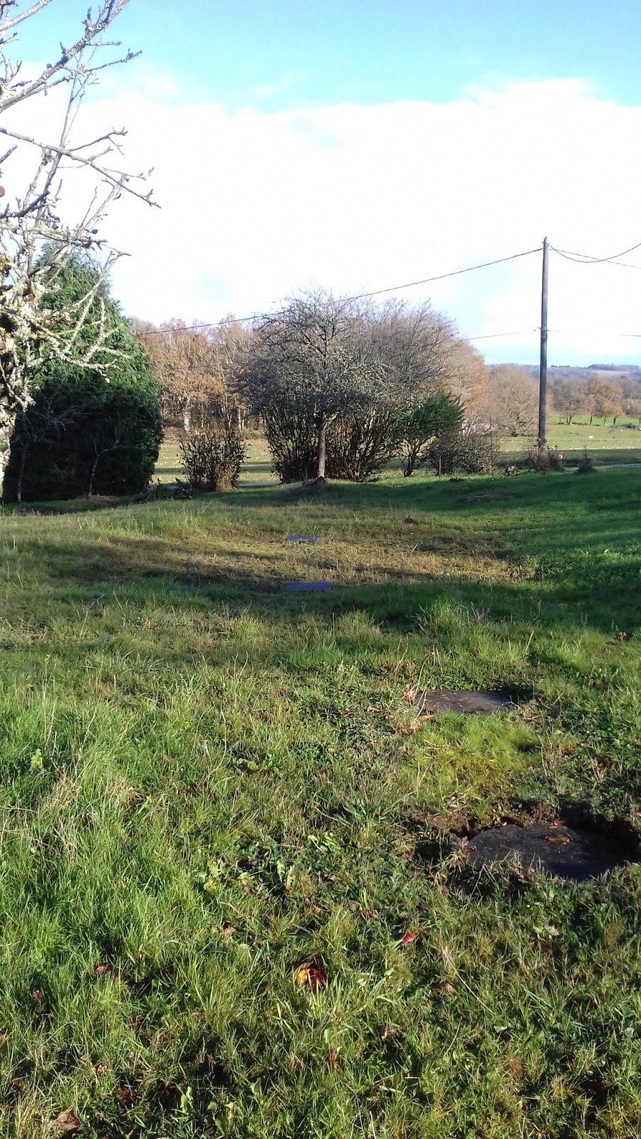 This is how the orchard paddock looks at the moment, a bit bare! We took the laurel shrubs out to the far right of this picture, but it's not clear where they were from this angle. I'm glad they're gone, I don't like their toxicity and they don't have much to offer to make up for it, in my opinion! Yesterday we planted some dogwoods and a couple of plumb trees. I have hedging whips to plant when I get back. We also uncovered some huge rocks and discovered that they extend a very long way under the top soil. I'm wondering if this is the reason that many of the trees are failing, because there is so little good topsoil. If that's the case, then a year or two of mulching and manure will make a huge difference.